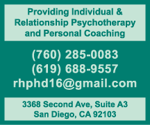 • Gay and Lesbian Issues – including Aging, Identity, Coming Out, Relationships   (offering support as a gay psychologist / psychotherapist in San Diego)
